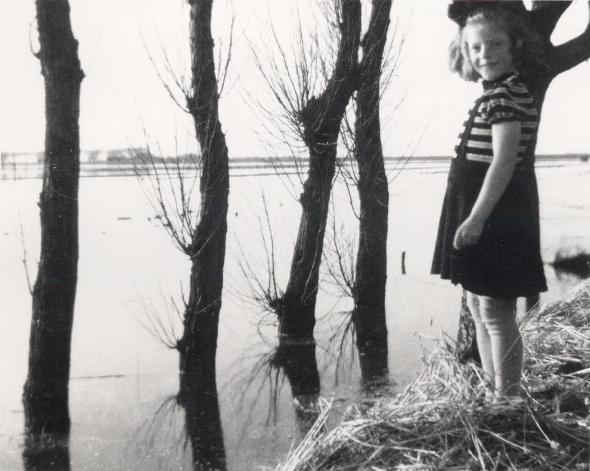 Afbeelding Pia Sterrenburg uit Piershil kijkt uit over de watervlakte. Collectie Museum Hoeksche Waard