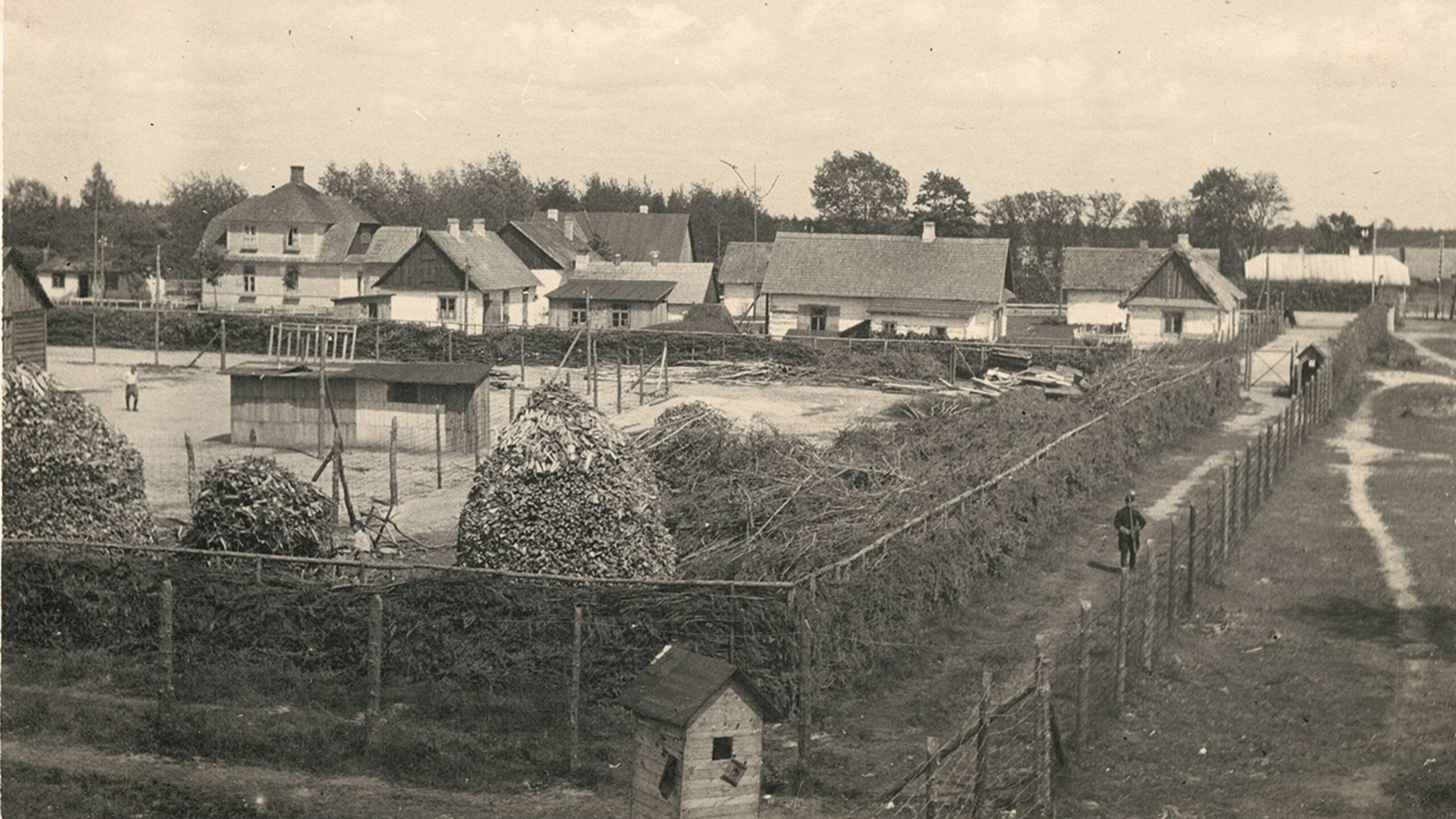 Bij de eerste barakken moesten de gevangenen hun bagage afgeven. De rest van het kamp was afgescheiden door rieten matten en takken met daarachter prikkeldraad.